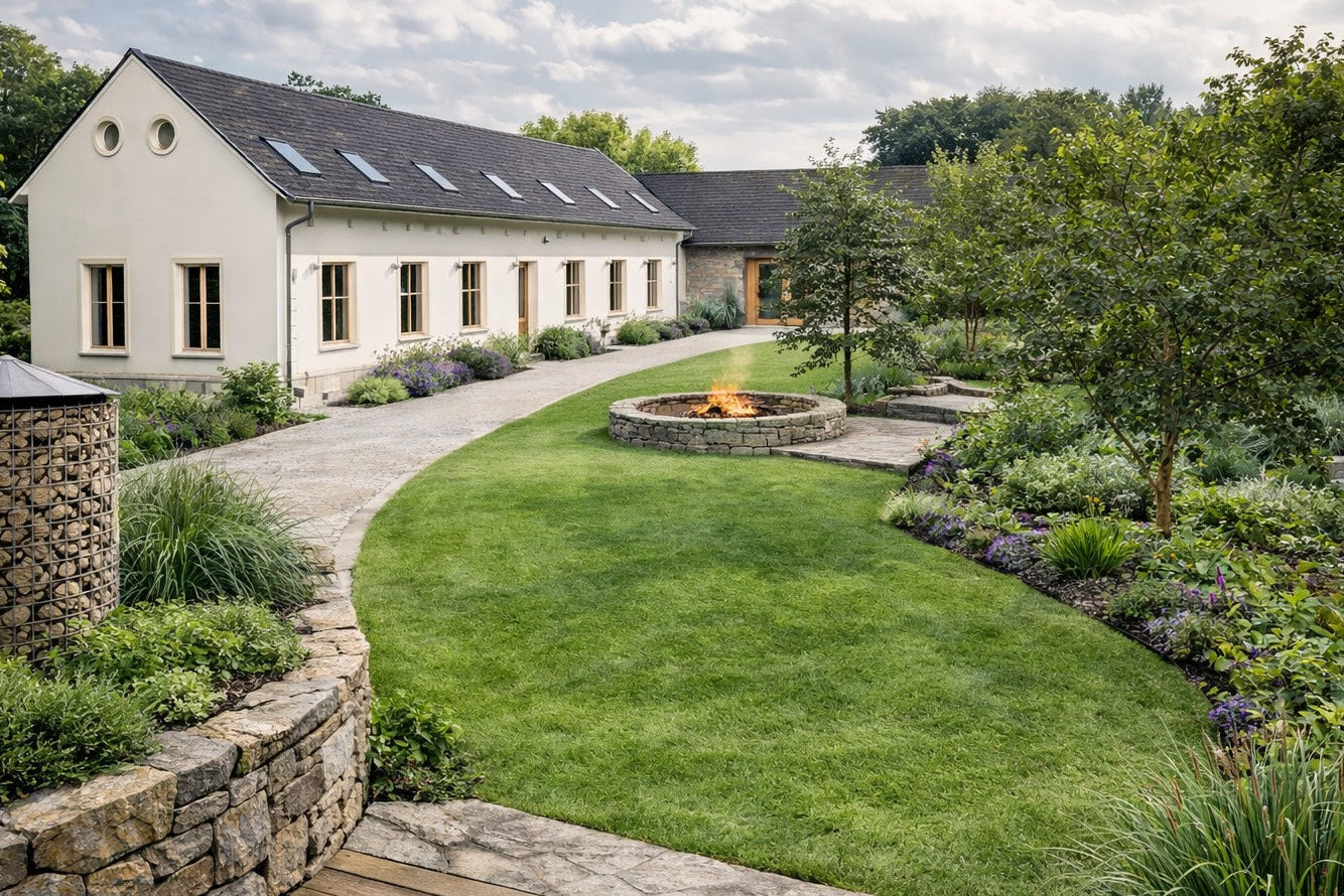 Navrhujeme, realizujeme a udržujeme zahrady. Provádíme terénní úpravy, výsadby, trávníky, oplocení a zahradní prvky, často v návaznosti na stavební práce.